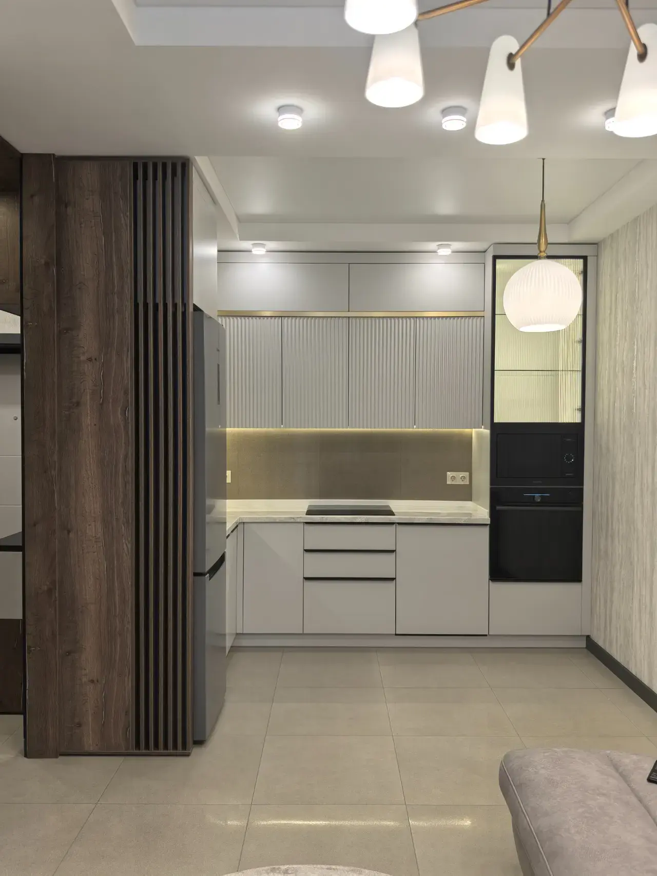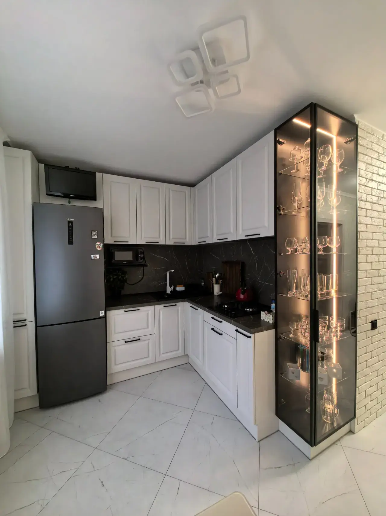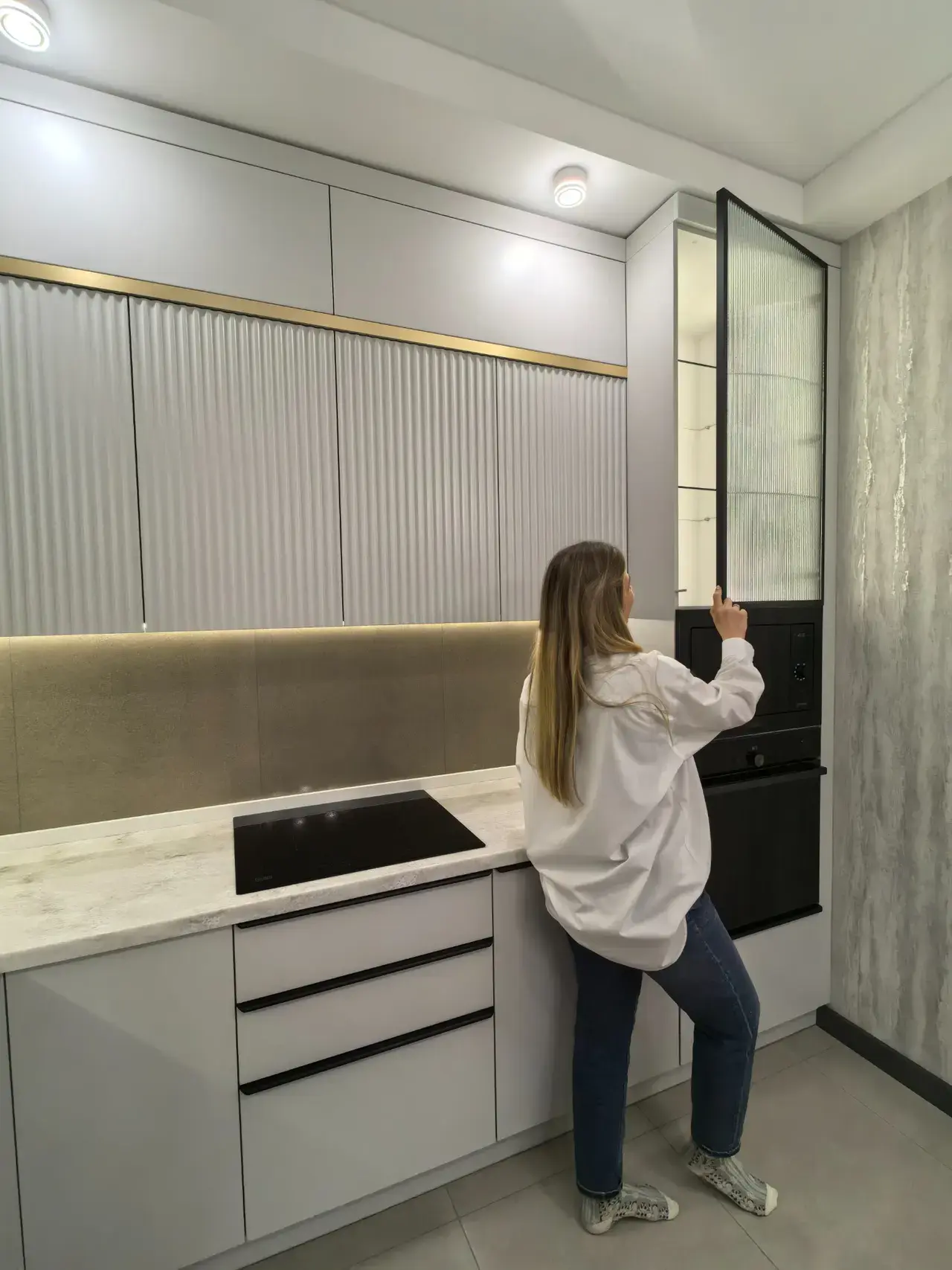 Заказывали перегородку между кухней-гостиной и лоджией, очень довольны!
